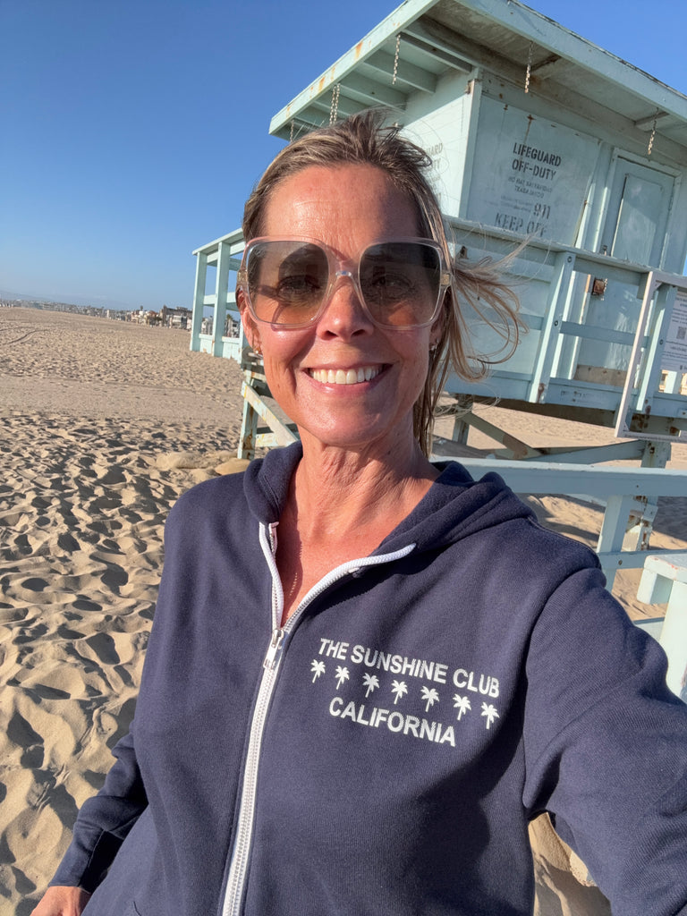 Get ready for Sunshine Season in our unisex fit Fleece Zip Hoody. The Sunshine Club California graphic is a whimsical twist on all things summer and is the perfect layering piece to get you ready for a day at the beach. Front " Sunshine Club California" print and back Surfboard/sunshine/wave icon print.