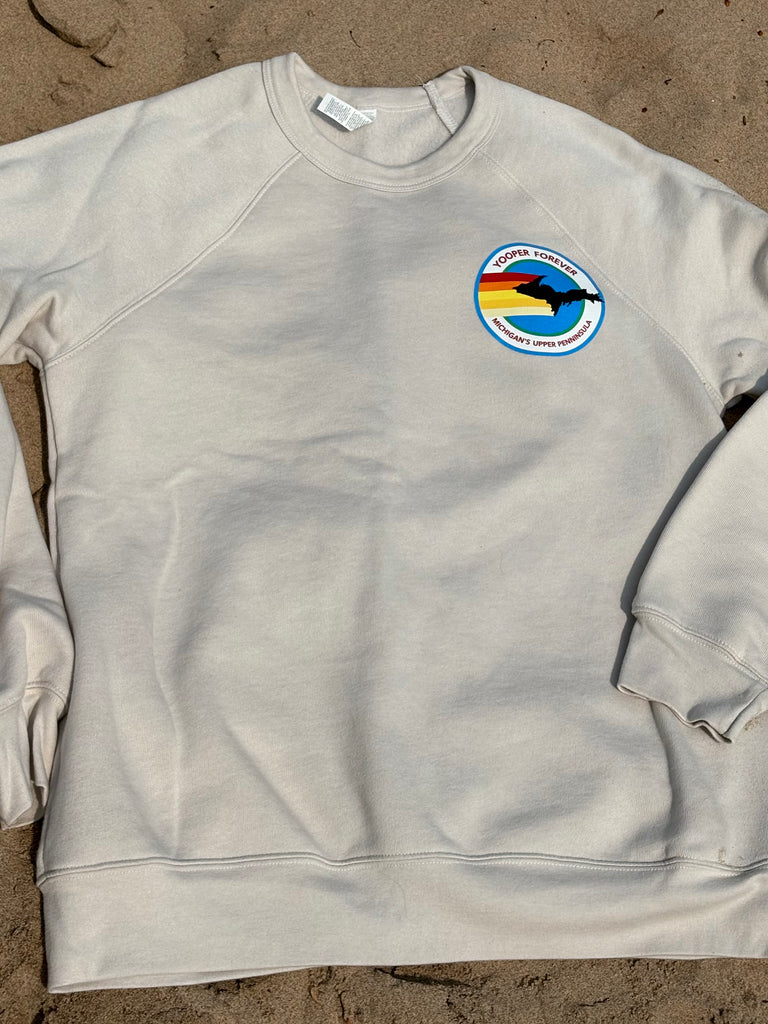 Our Colorful Yooper Forever Logo Unisex Sweatshirt is super soft. Graphic includes UP icon and bright stripes. LIghtweight and perfect for any season.